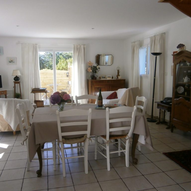 Logement familial, la maison contient de beaux espaces communs permettant de profiter de chaque instant. La cuisine ouverte sur le salon/séjour offre également un accès direct sur la terrasse extérieure. Logement entièrement équipé, vous y retrouverez le confort de votre domicile.